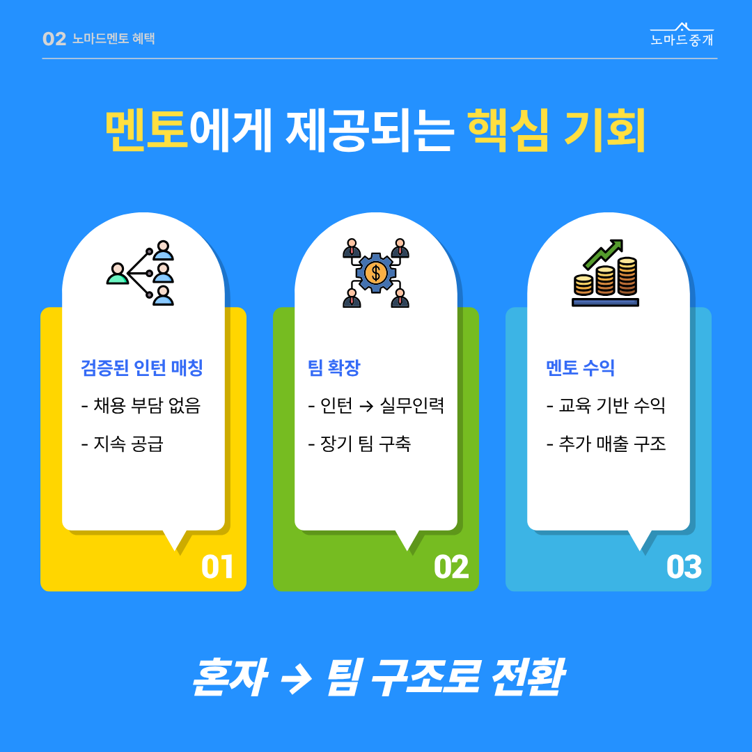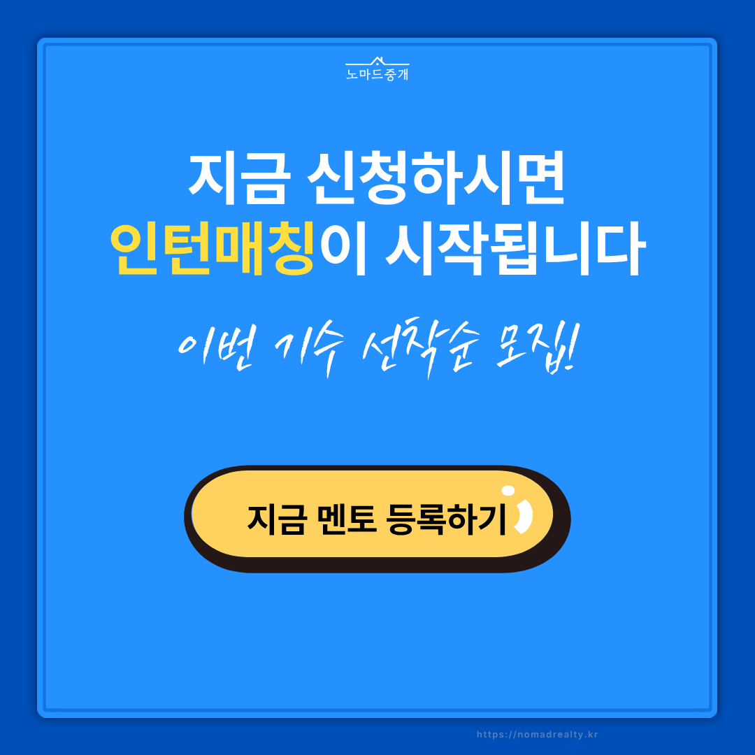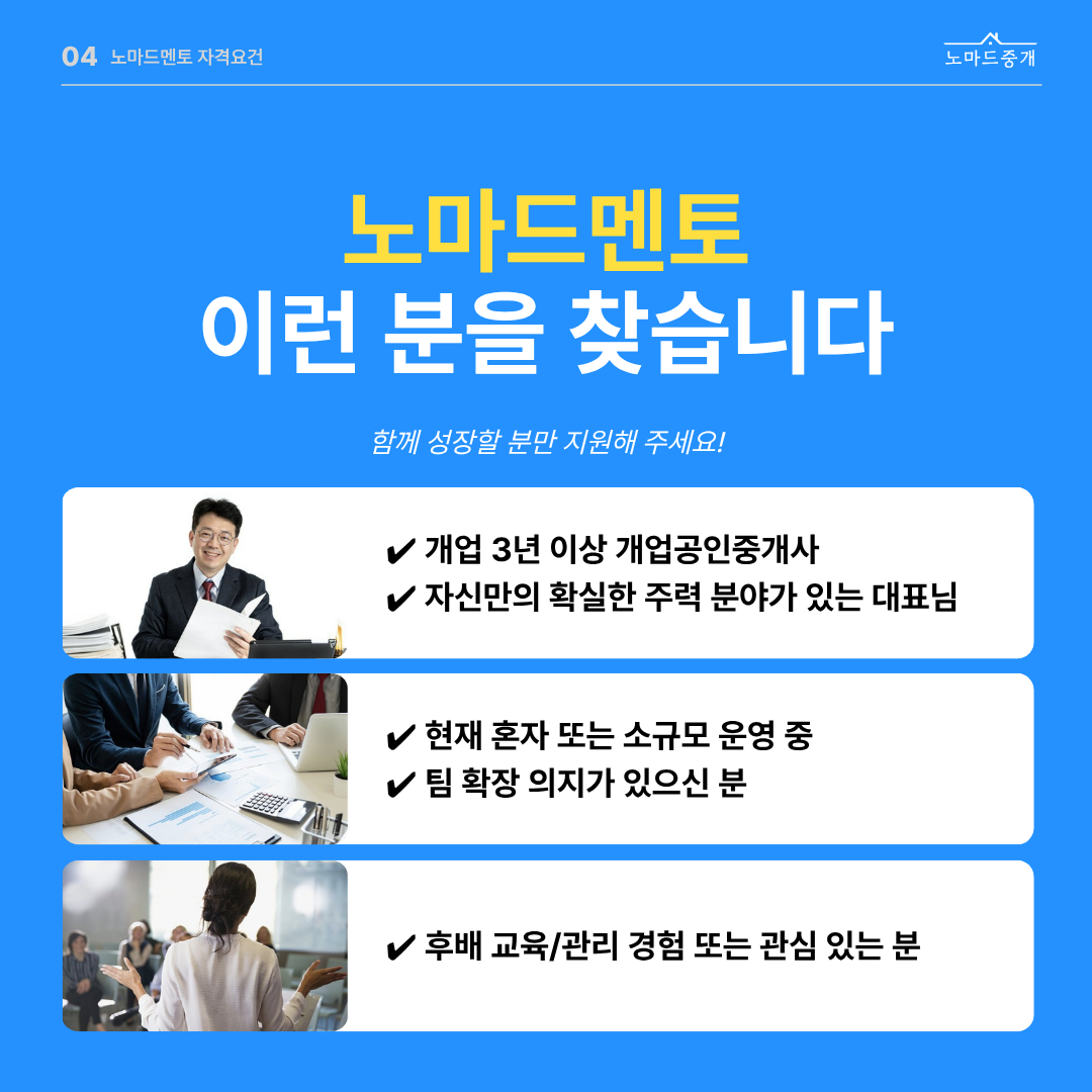 중개브랜드를 확장하고 네트워크를 형성학 수 있는 노마드멘토로 신청하세요