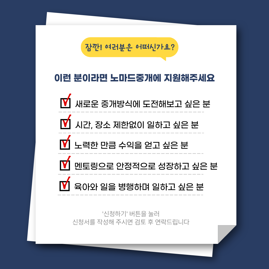 신청하기 버튼을 눌러 신청서를 작성해 주시면 검토 후 연락드립니다